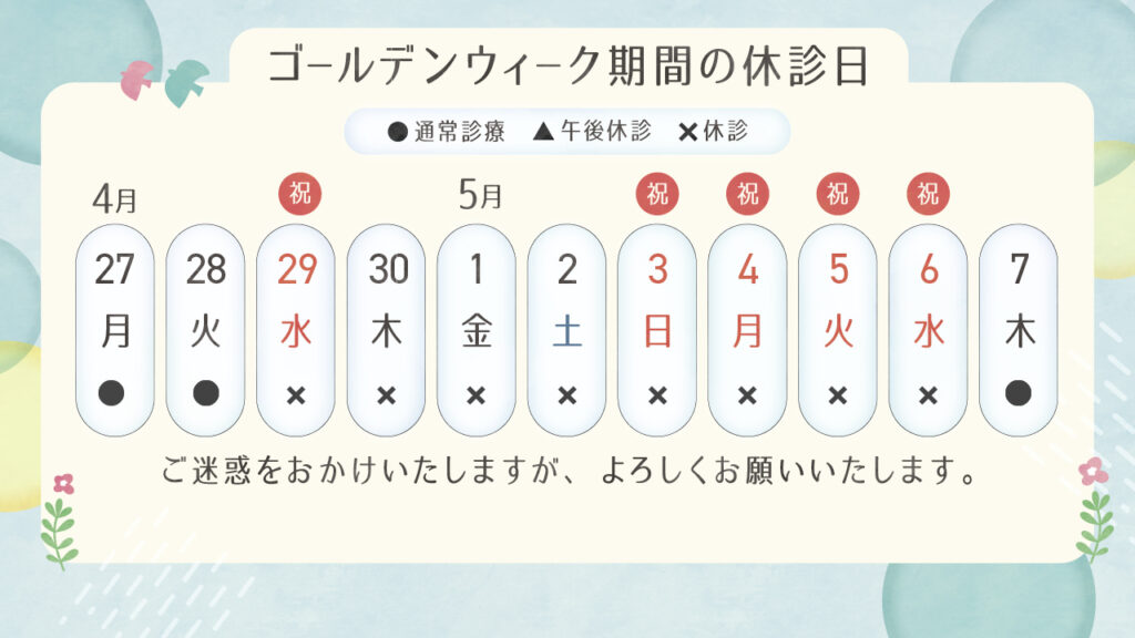 ゴールデンウイーク期間の休診日について
